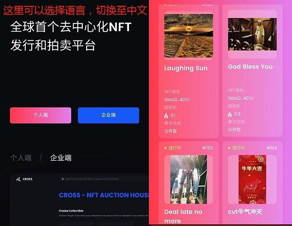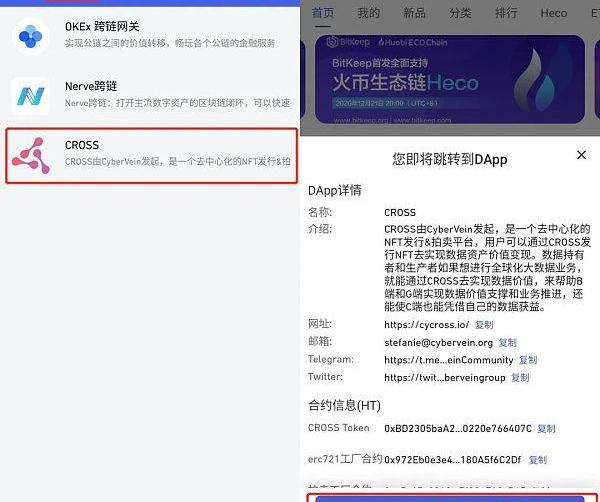 手机适配:用户可以下载Huobi钱包和BitKeep钱包,进入钱包内置的DApp界面直接体验CROSS的NFT发行与拍卖。