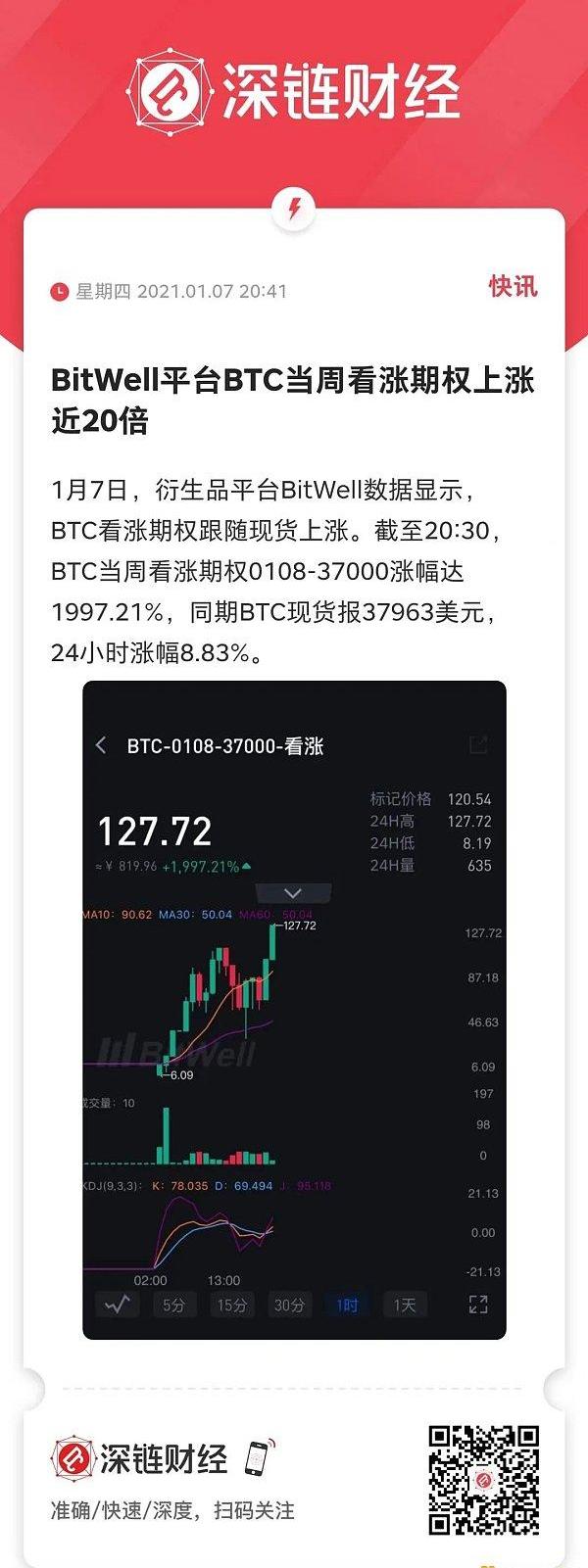 比特币当周看涨期权上涨近20倍。
