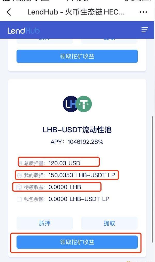 7、注入流动性后,重新回到LendHub质押挖矿界面点击