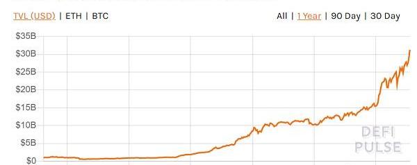 一年时间,DeFi锁仓规模增长30倍,达到300亿美元