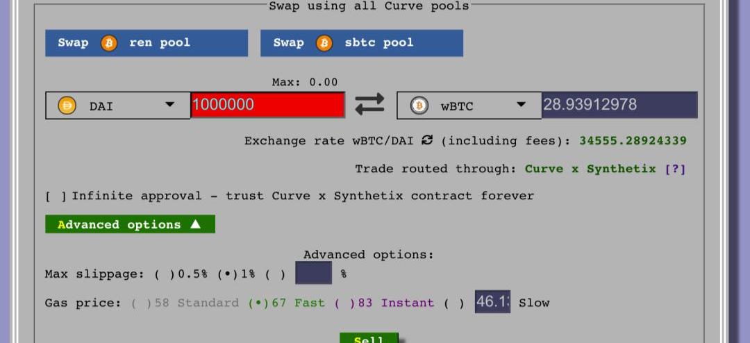 不过,最近Curve交易平台上线的跨资产兑换平台,集成Synthetix的虚拟合成资产交易功能,大幅改善了大额交易下的滑点问题。