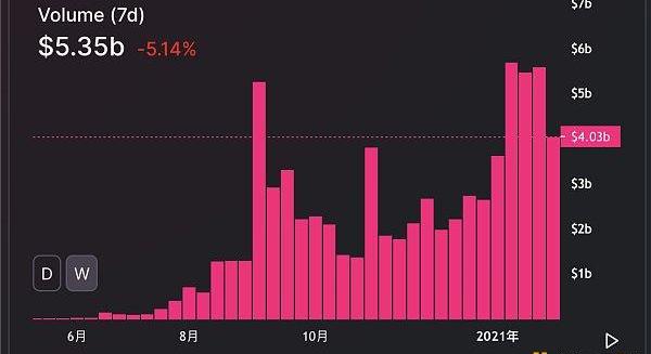 在defi锁仓排名中目前排名第三。除了锁仓,Uniswap交易量也屡创新高。2021年,Uniswap交易量单周突破55亿美元。