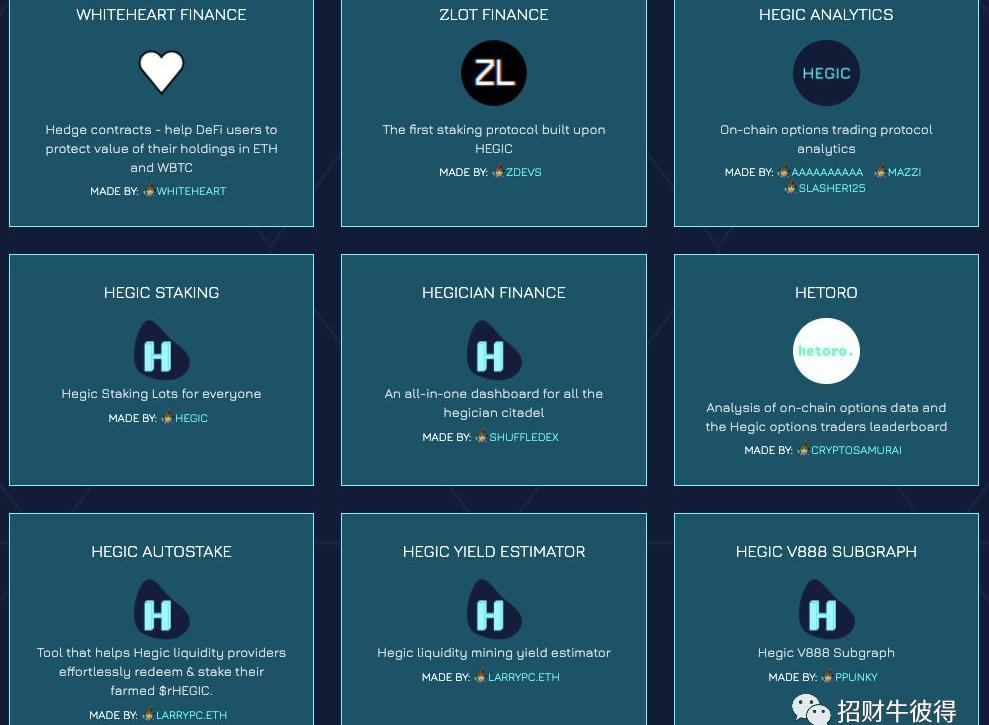 Hegic虽然是由匿名开发者Molly独自开发而来,但时至今日,已经有众多的开发者为Hegic添砖加瓦,社区开发者们开发了各种各样的工具来追踪和提升Hegic,可以参看这篇文章牛市不慌张,去看一下都有哪些应用。