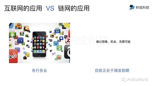 波卡的多链结构,就相当于是计算机里面的局域网和互联网的基础协议,Substrate 区块链框架也很类似 Linux。在传统互联网中,有了 Linux,才有安卓,才有华为、小米、三星手机等,同样的道理,在区块链中,有了 Substrate 也会有优秀的区块链创新产品。正如 Gavin Wood 博士所说,“不同于通过智能合约(在以太坊区块链上运行的相对较小的代码片段)来运行应用程序,Polkadot 允许每个应用程序开发人员创建自己的区块链,我们将看到许多不同的创新产品,而它们在智能合约环境中是不可能存在的。”