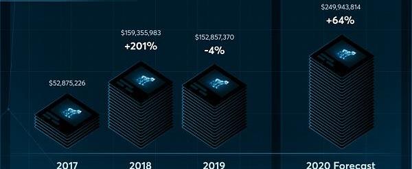 在2017年底CryptoKitties的繁荣之后,NFT市场在整个2018年和2019年仍然相当停滞。NonFungible的年度报告将2019年定为NFT生态系统的稳定年,因为它在ICO狂热之后进入了"整合和稳定阶段"。报告指出,在过去两年中,大多数NFT项目的留存率很差,其中2019年绝大多数项目的使用时间为三个月或更短。它接着透露,全年新创建的NFT资产中只有10%多一点的资产在流通,这一比率与2018年相似。