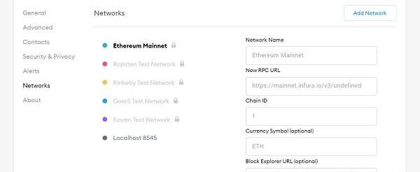 15.在设置栏里,选择“Networks”,点击页面右上角的“AddNetwork”