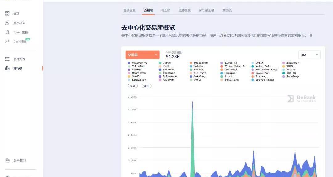 这里计算方式不同,各个产品数据有些不同,需要相互印证,当然etherscan关于智能合约的数据最准,不过看起来很麻烦。DeBank打开后最左边一栏可以看到如下图: