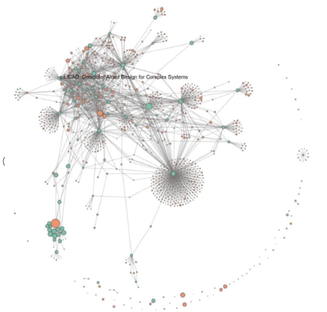 这个子图有一个有机的外观,在cadcad相关赠款的生态系统周围有一个紧密的协作集群,并且与该生态系统中的多个项目保持联系。