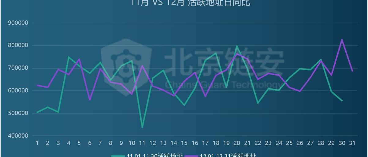 从近两月活跃地址数和币价的关系来看,12月中在币价上涨启动后,活跃地址数还是有一定的向上提升态势。