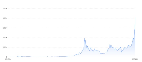 去年9月开始,比特币迎来牛市,从9000美元一路上涨,创下了41950美元的历史新高,截止发稿时,币价回落到35000美元附近。比特币近日的涨势带动了行业的整体增长,1月7日,加密资产总市值首次跨过1万亿美元的门槛。