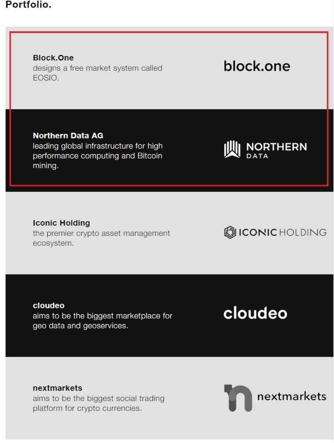 接下来,让我们看一下投资组合,Block.one赫赫在列。