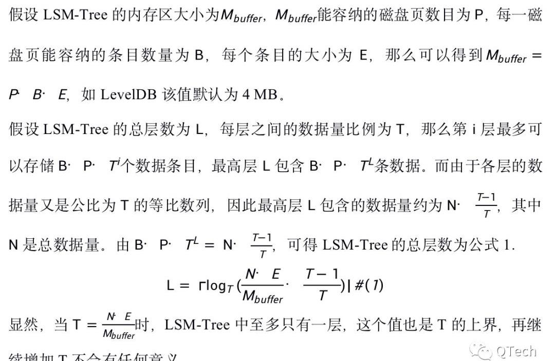 LSM-Tree应用布隆过滤器来加速查找,LSM-Tree为每个Run设置一个布隆过滤器,在通过I/O查询某个Run之前,首先通过布隆过滤器判断待查询的数据是否存在于该Run,若布隆过滤器返回Negative,则可断言不存在,直接跳到下个Run进行查询,从而节省了一次I/O;而若布隆过滤器返回Positive,则仍不能确定数据是否存在,需要消耗一次I/O去查询该Run,若成功查询到数据,则终止查找,否则继续查找下一个Run,我们称后者为假阳现象,布隆过滤器的过高的假阳率会严重影响读性能,使得花费在布隆过滤器上的内存形同虚设。限于篇幅本文不对布隆过滤器做更多的介绍,直接给出FPR的计算公式,为公式2.