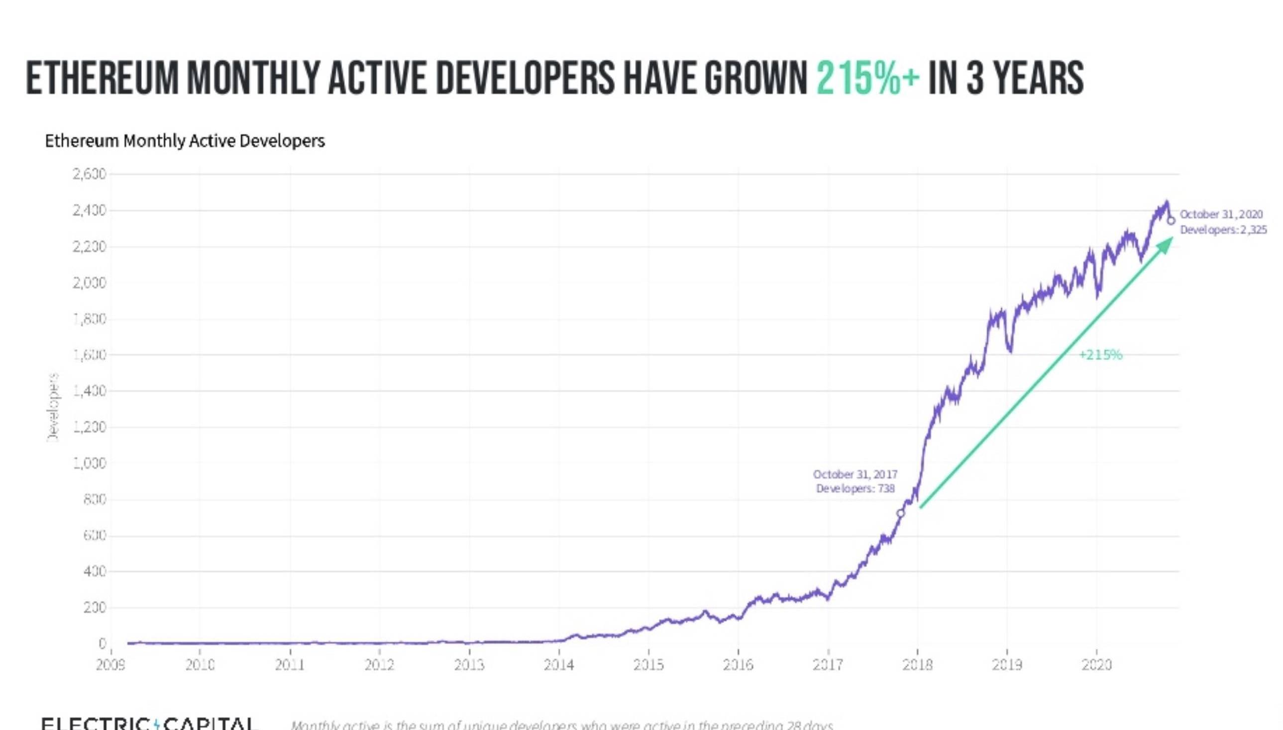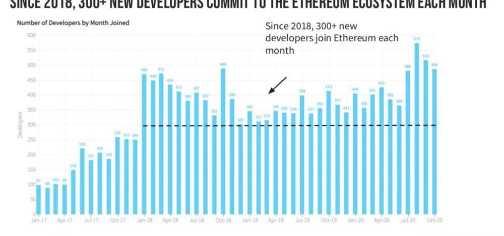 6、自2018年以来,每月至少有300位新开发者加入以太坊生态系统;