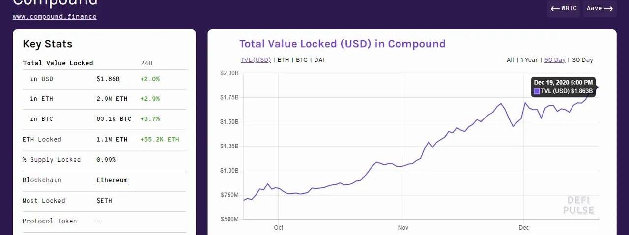 作为DeFi的底层金融结构,借贷业务通常被很多人忽略,然而事实上所有的金融组合产品,衍生品等等都离不开借贷业务的支撑。很多人存在这样的疑问,为什么像Compound和Aave这样的借贷平台收益并不高,但是锁仓量却非常惊人。我们来看下目前的数据。