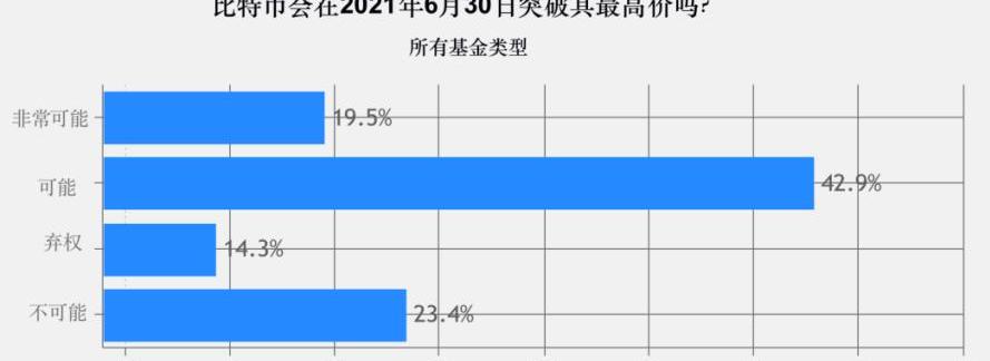 调查显示,在有关比特币价格趋势的预测中,约有62%的加密基金认为,比特币将在未来12个月内突破其历史最高价,19,891美元。少于1/4的加密基金认为此现象不太可能发生。