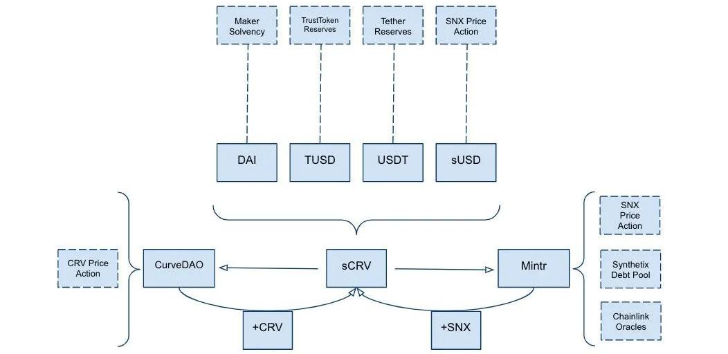 Curve的sUSD池是近期最流行的「收益种植」机会之一,用户将一个或多个稳定币存入池中,并将它们的LP代币质押到Synthetix的Mintr平台,以获得SNX奖励。