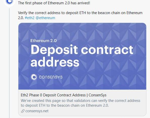 但是,ConsenSys在推特上提醒用户,不应该将资金直接发送到存款合同,而应该使用放样机制对资金进行放样。