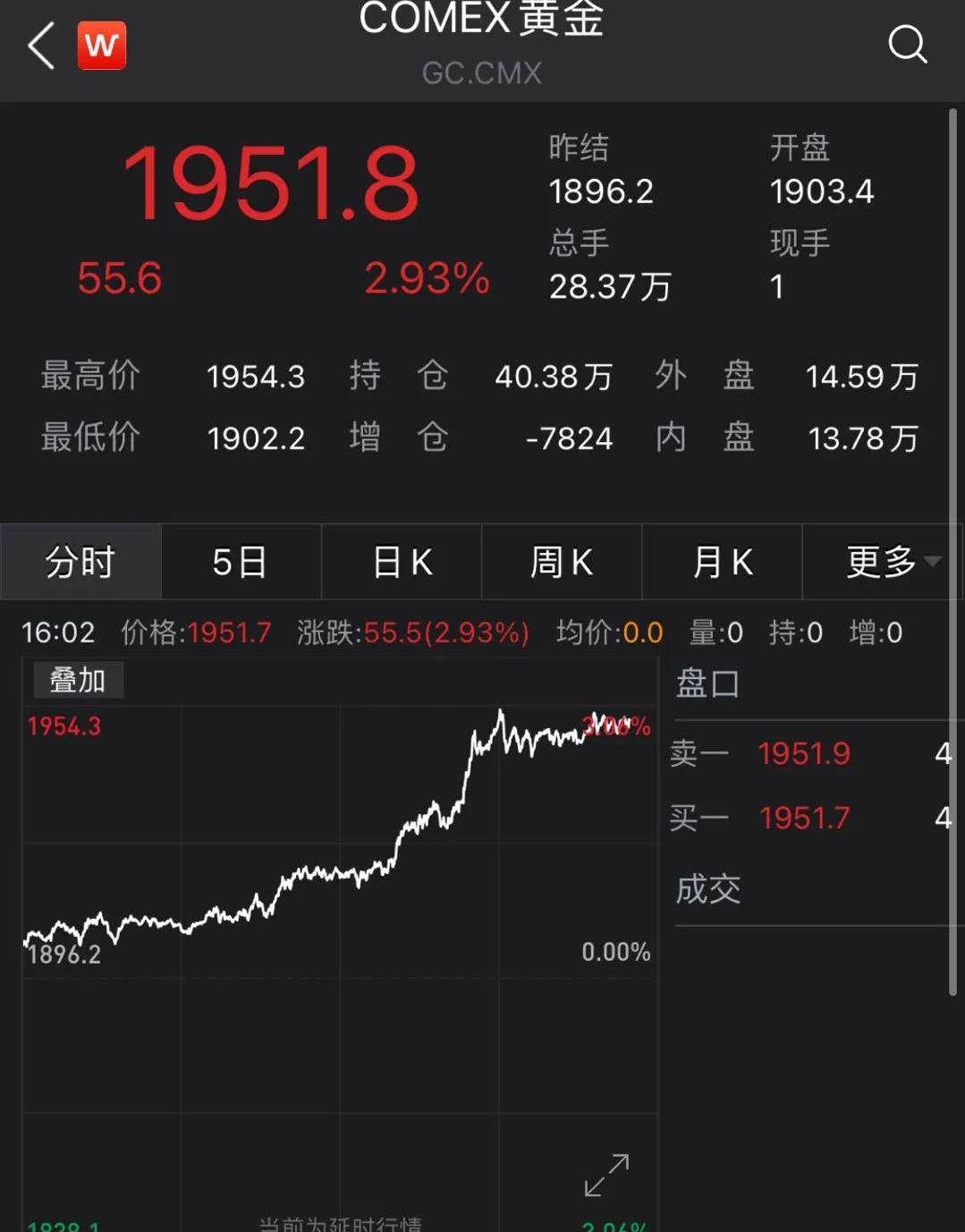 昨晚,避险资产已经开始拉升,今天凌晨,鲍威尔的讲话进一步助推了黄金、白银的上涨。
