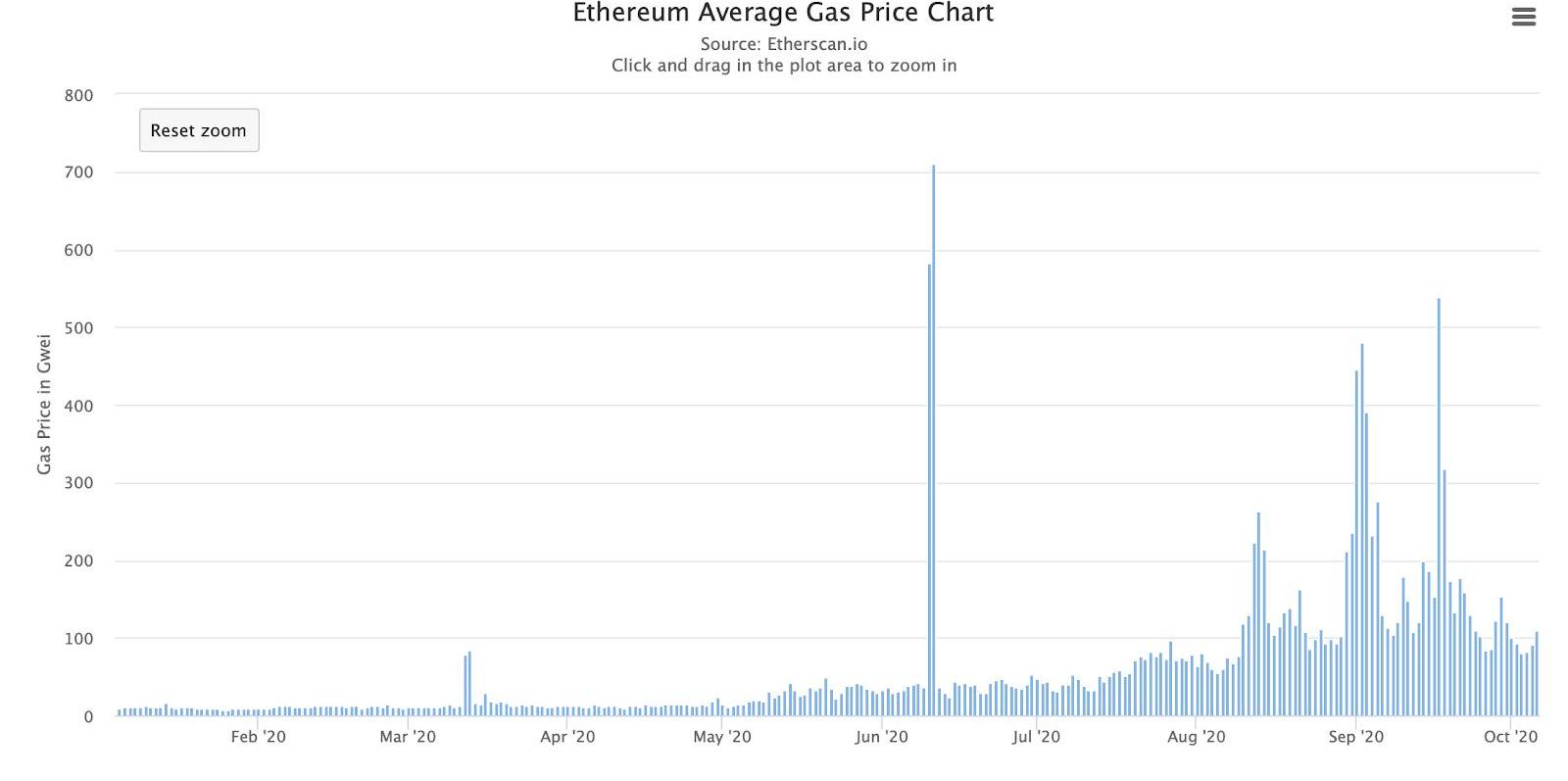 这几个月来,平均gas费高得离谱?来源:Etherscan