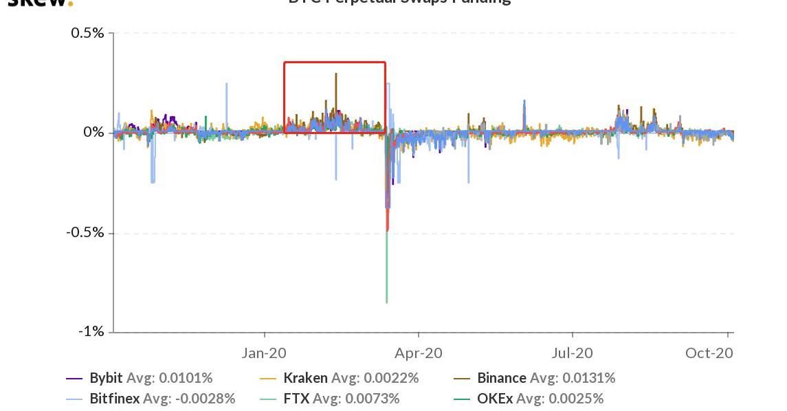 另外,由于对减半行情的期待和炒作,市场上多头情绪强烈,资金费率在3月12日之前的2个月都处于高位,这表明市场上多头的杠杆水平较高,因此市场整体风险水平也较高。