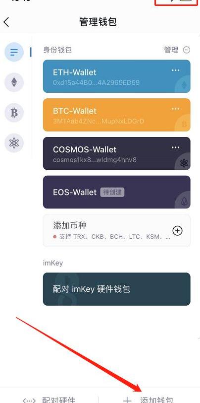 第三步:点击添加钱包,找到对应资产,然后创建钱包。