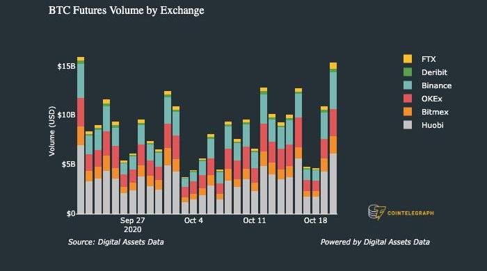 (图:交易所期货交易量,数据来自DigitalAssetsData)