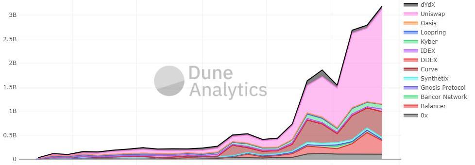 1900/1/1 0:00:00Uniswap是以太坊上最受欢迎的去中心化交易所,整个2020Q2都呈现爆炸性增长的态势。实际上,就在几天前,Uniswap的交易量就超过了全球最大的中心化交易所,在24小时内就处理了价值4.2.