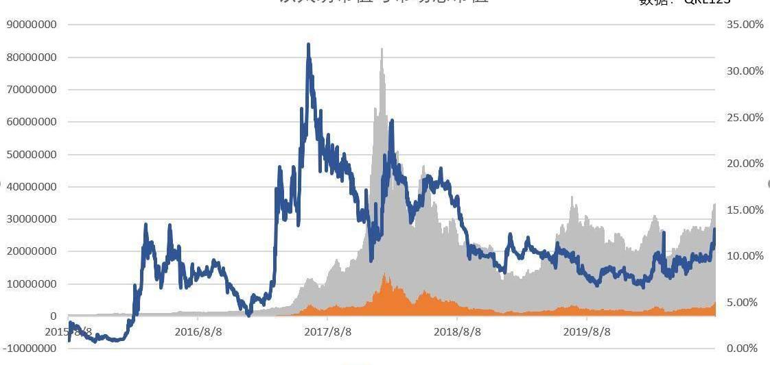 从以太坊市值及市值占比可以看出,以太坊市值是在2017年末及2018年上半年达到巅峰,同时,以太坊市值占比峰值在2017年6月左右出现,一度逾30%。