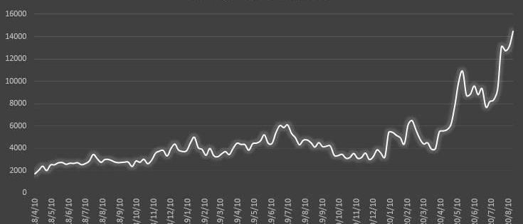 总持仓数量在最新一期数据中自历史高点13090张进一步上升至14454张,相比于此前较为「温和」的上涨表现,最新统计周期内这项数据刷新历史高点的幅度此前未见,由此可见市场对于行情的进一步走高仍然抱有非常高的期望,横盘阶段行情一旦出现进一步冲高的苗头,市场参与热度就能够在很短的时间内实现快速集聚。