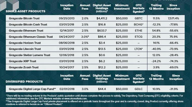 灰度的主要投资产品及最新表现来源:grayscale.co