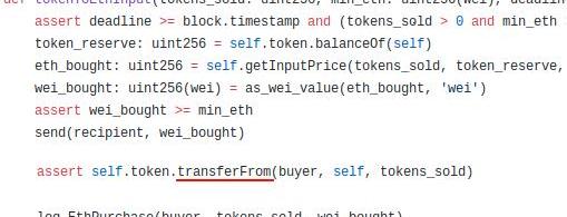 要注意,现在Uniswap是存在一个已知的可攻击路径的,风险源主要是ERC-777token的重入攻击,该攻击的大概原理:?通过二次调用tokenToEthSwapInput函数来进入Uniswap代币兑换。?在第二次token的购买中,ETH储备较低,但token的储备相同。这意味着第二批代币将只交换比应有的数量多一点的ETH。这是控制交易所购买正在出售的代币的价格公式: