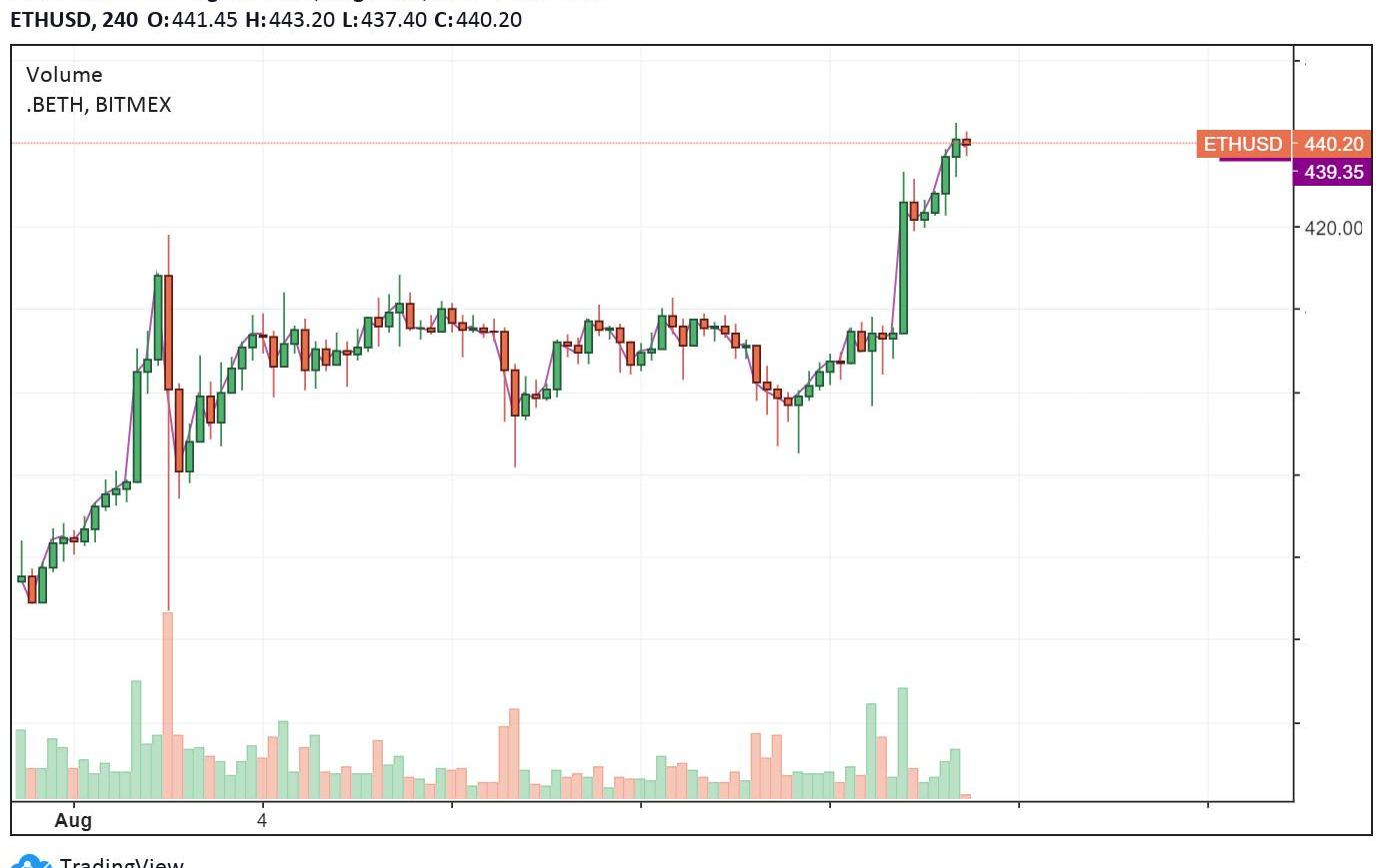 “以太坊突破了两年来的新高444美元。在过去的25天中,以太坊上涨了87%,自3月份的低点以来上涨了近400%,较年初至今上涨了235%。”