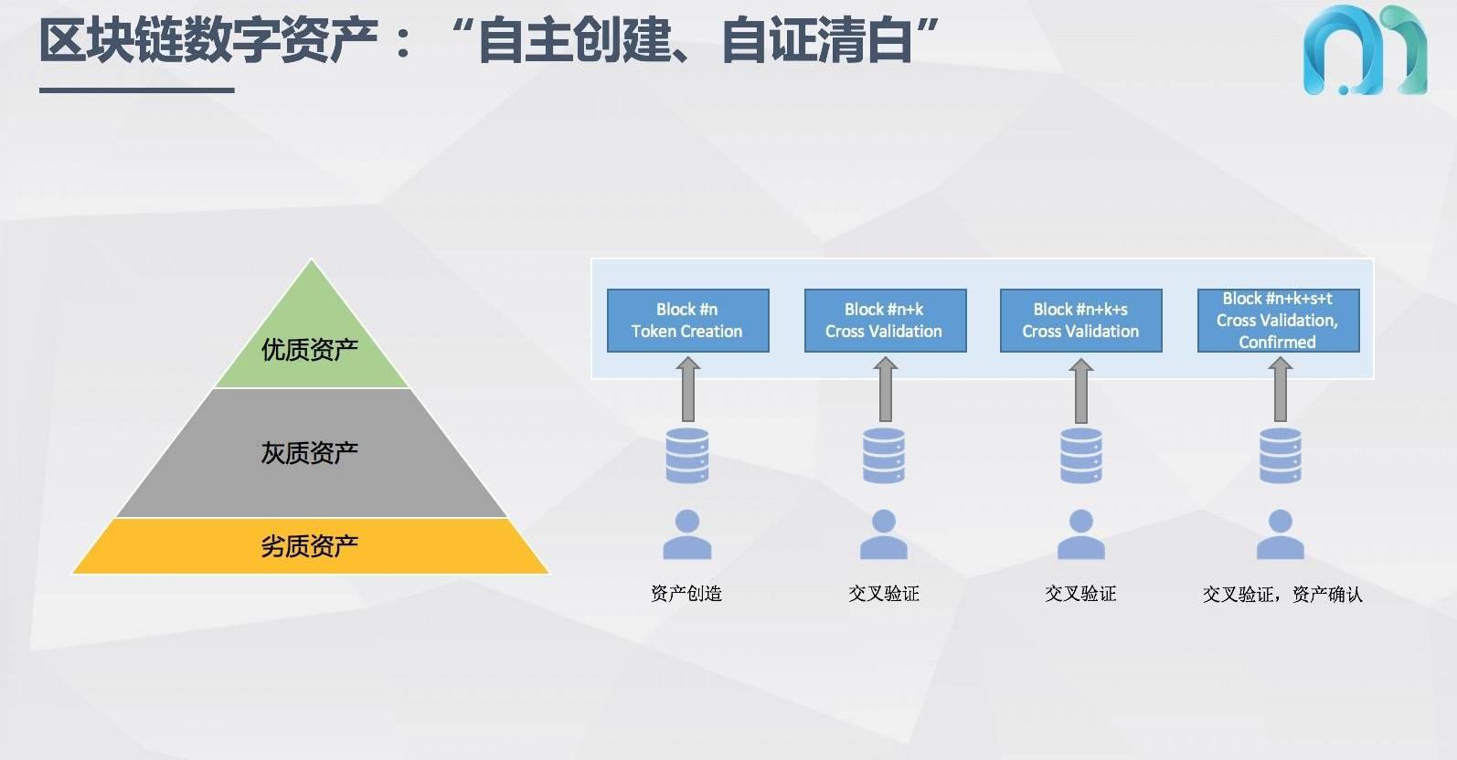 我们从中看到了一个模式——自主式的资产创建过程。也就是说,在规定一套资产创建的规则后,所有人基于区块链相互协助,利用其公开、透明、可信的数据特性,自主创建资产,并且可以自证清白,这彻底改变了过去资产的创建和确认的过程。