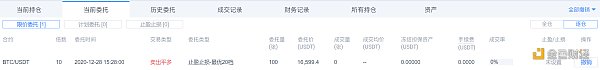 完成设置后,用户可在“当前委托”栏下的止盈止损订单栏查看: