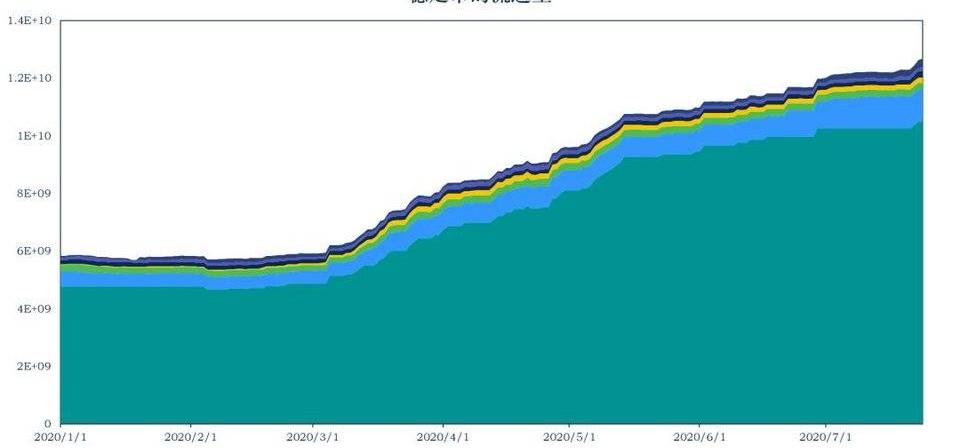 过去一周,主要稳定币流通量全面增长,总市值增长4.65亿美元。USDT的流通量在暂停增长20多天后,上周在ETH和TRON上各增发1.2亿美元。TUSD的流通量增加1.06亿,DAI的流通量增加了7754万,USDC、PAX、BUSD、HUSD、GUSD的流通量分别增加265万、1458万、608万、1713万、19万。TUSD和DAI相比前一周,流通量分别增长79%和37%。