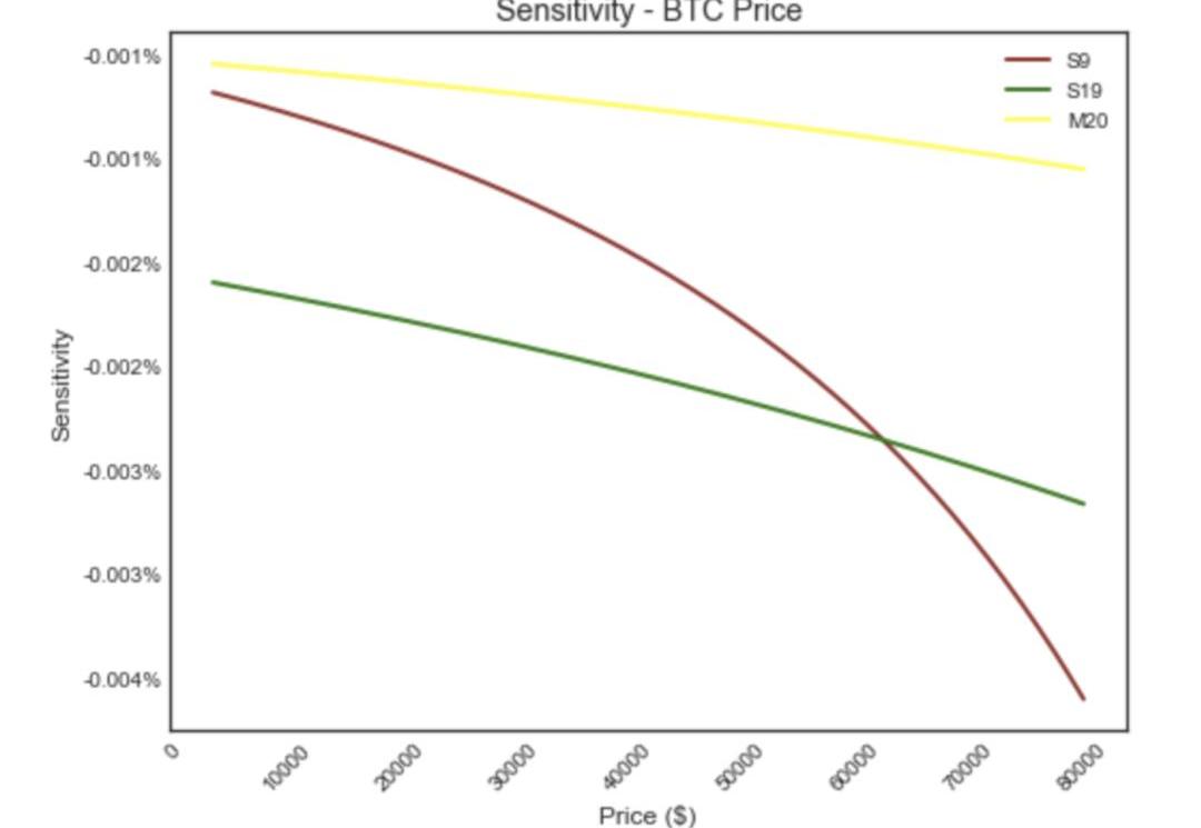 对全网算力变化的敏感度:
