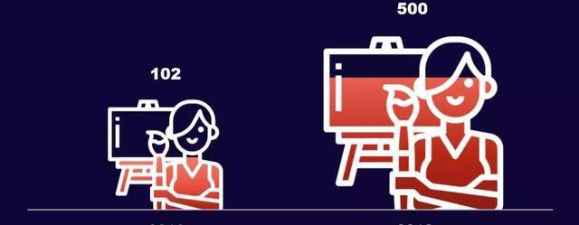 蓬勃发展的不仅仅是艺术家作品转售量,2019年,艺术家、作品、美元额和交易量也大幅增长。