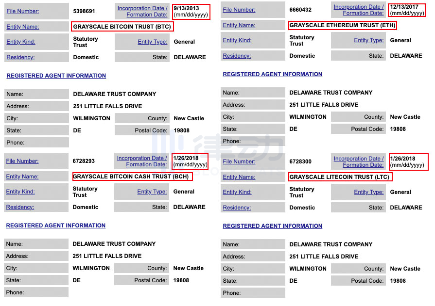 此条消息在社群内引发广泛讨论,灰度官方目前尚未回应消息是否属实,而关键点在于需要确认这些在特拉华州政府显示的灰度信托的同名公司实体,是否为灰度注册的?