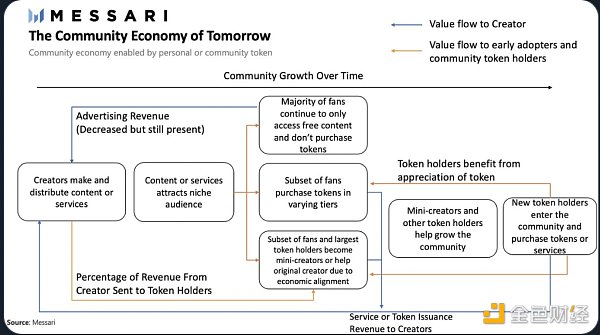 社区经济由加密网络和社交代币驱动,向早期经济参与者提供激励,让这些参与者利用自己的技能和资产来为社区或个人提供支持,这些技能和资产在之前并没有得到充分利用。