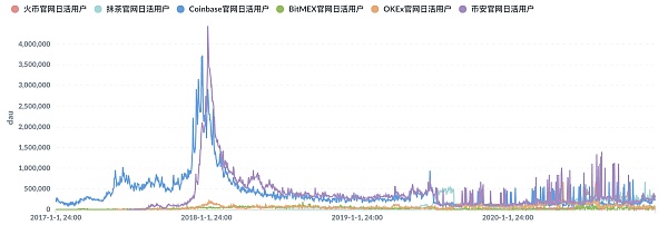 整体来看,虽然BTC价格突破历史新高,但是行业活跃用户并没有明显都突破,整体回到2017年末都水平。