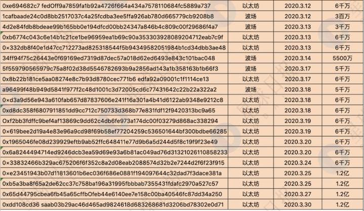 下图为Odaily星球日报统计的USDT在以太坊和波场网络上增发的具体情况: