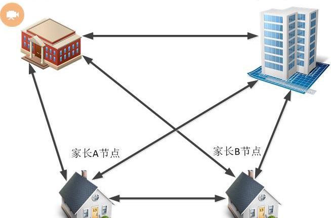 整套系统基于联盟链架构,其中幼儿园、管理部门、家长A和家长B是联盟链中的节点,它们共同构成P2P视频监控网络。该系统设立多级管理权限认证,管理部门决定幼儿园节点的进入,幼儿园节点决定家长节点的进入。视频数据源是由架设在幼儿园教室里的摄像机获取,产生的视频数据除了发送给幼儿园节点,同时也发送给管理部门节点、家长A节点和家长B节点。