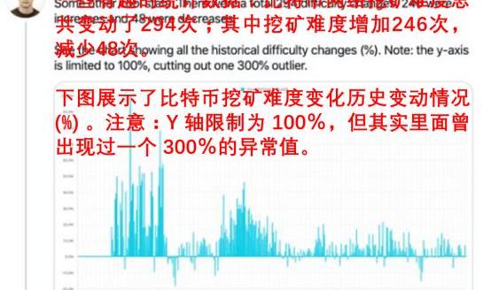 不过挖矿难度也不是一直都在往上增长的。根据CoinMetrics的数据显示,截自今年三月,比特币挖矿难度总计变动了294次,其中上调难度为246次,下调为48次。但历史上的挖矿难度下调幅度皆不超过19%;相反,上调难度的时候经常会触及中本聪设计的上浮最大值。比如2017年7月11日比特币首次被科技媒体Slashdot报道那天,前者价格猛涨十倍,而六天后的调节中,挖矿难度一次过上调了300%。