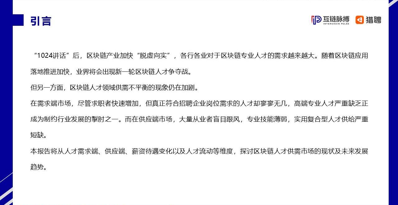 本报告将从人才需求端、供应端、薪资待遇变化以及人才流动等维度,探讨区块链人才供需市场的现状及未来发展趋势。