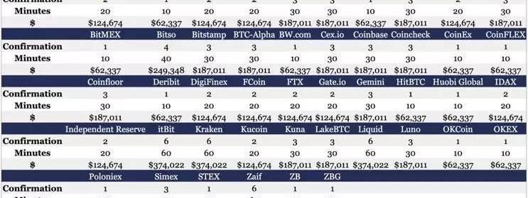?TheBlock对46家加密货币交易所充值所需的区块确认数进行了分析