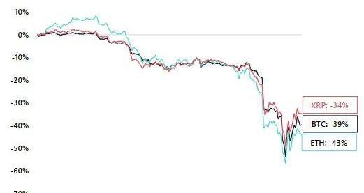 3、上周,绝大多数加密货币价格下跌幅度超过50%。