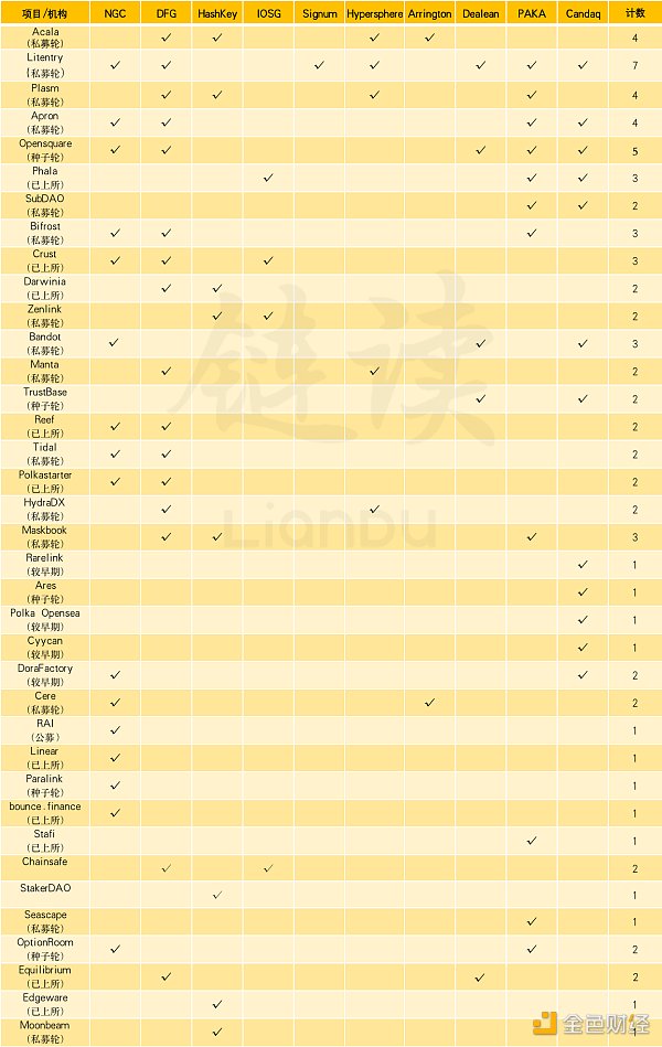 波卡生态保荐人投资项目一览表