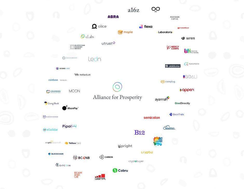 最近,非营利组织Celo基金会成立了联盟“繁荣联盟”,集合了50多家各路人马,其中主要是加密货币或区块链机构,也包括了一些非营利组织如格莱敏基金会、美慈、直接给钱等知名慈善机构,以及GSMA等,其模式堪与Libra协会相比。