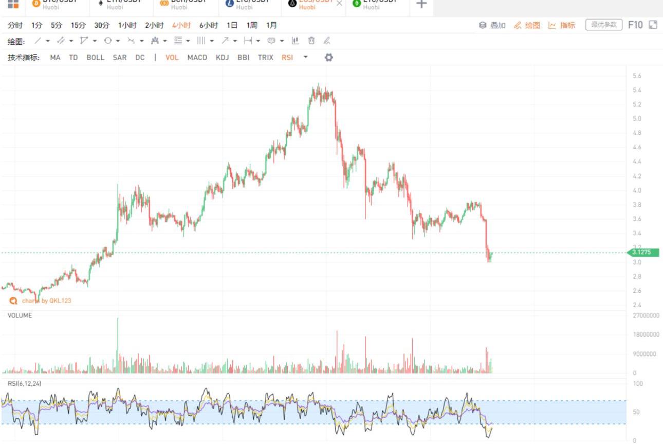 EOS自02月15日开始下跌以来,已经先后出现了四次明显放量,目前回到01月份放量拉升之前的水平。对于主力来说,目前价位是一个比较理想的拉升范围,所以这次企稳反弹后,主力或将会重新介入。但后续还需看比特币是否能够企稳。