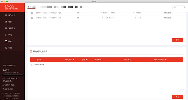 已经完成绑定的,可以在“绑定记录”中查看到历史记录,并可以随时对已绑定的 MASS 币进行提币申请。